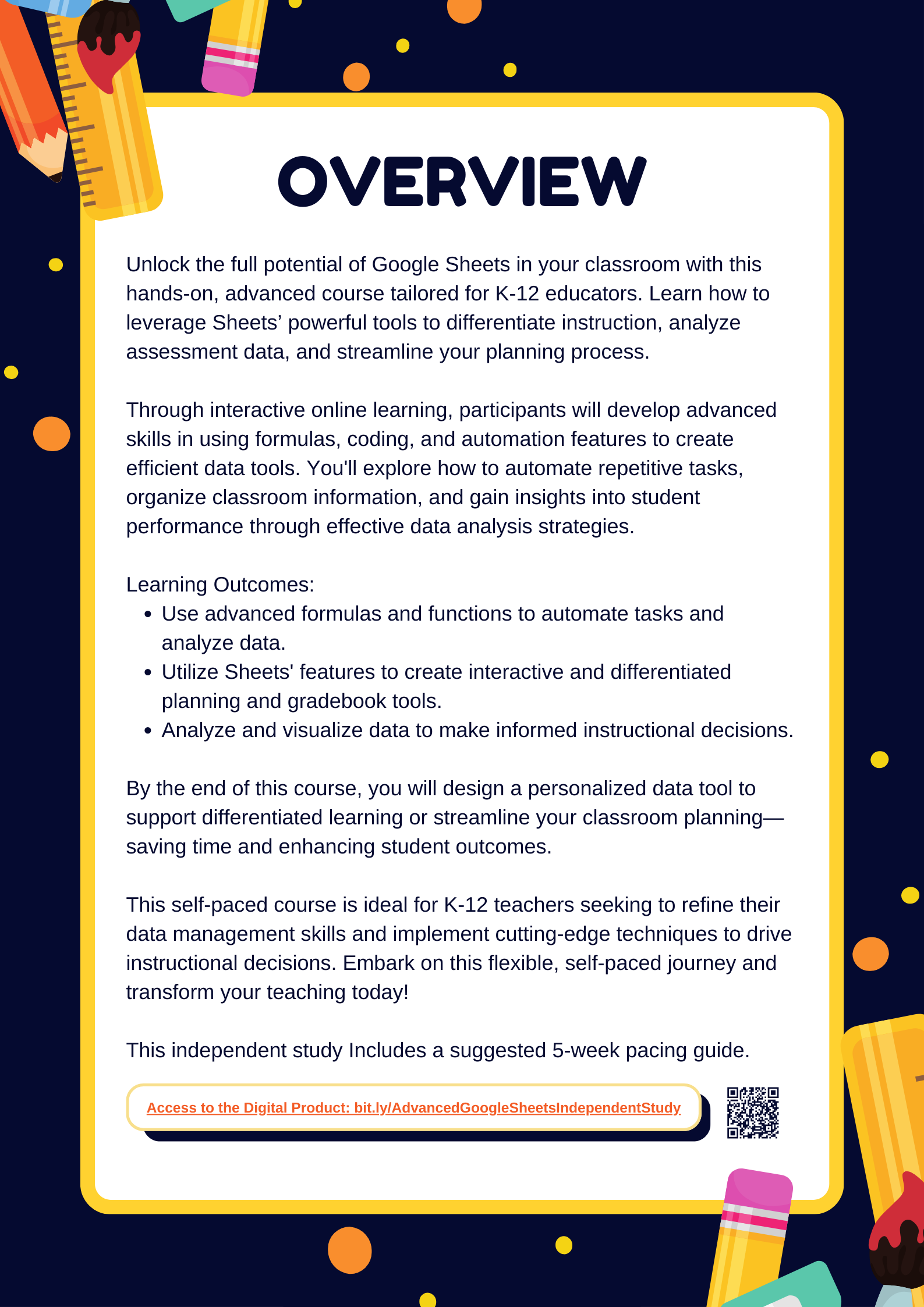 By the end of this course, you will design a personalized data tool to support differentiated learning or streamline your classroom planning—saving time and enhancing student outcomes.
